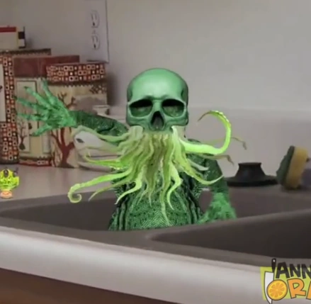 The Angry God was a minor character who only appeared in the Annoying Orange episode "Sacrifice Play". He was seen emerging from the garbage disposal and eating the Romanesco Chief.
