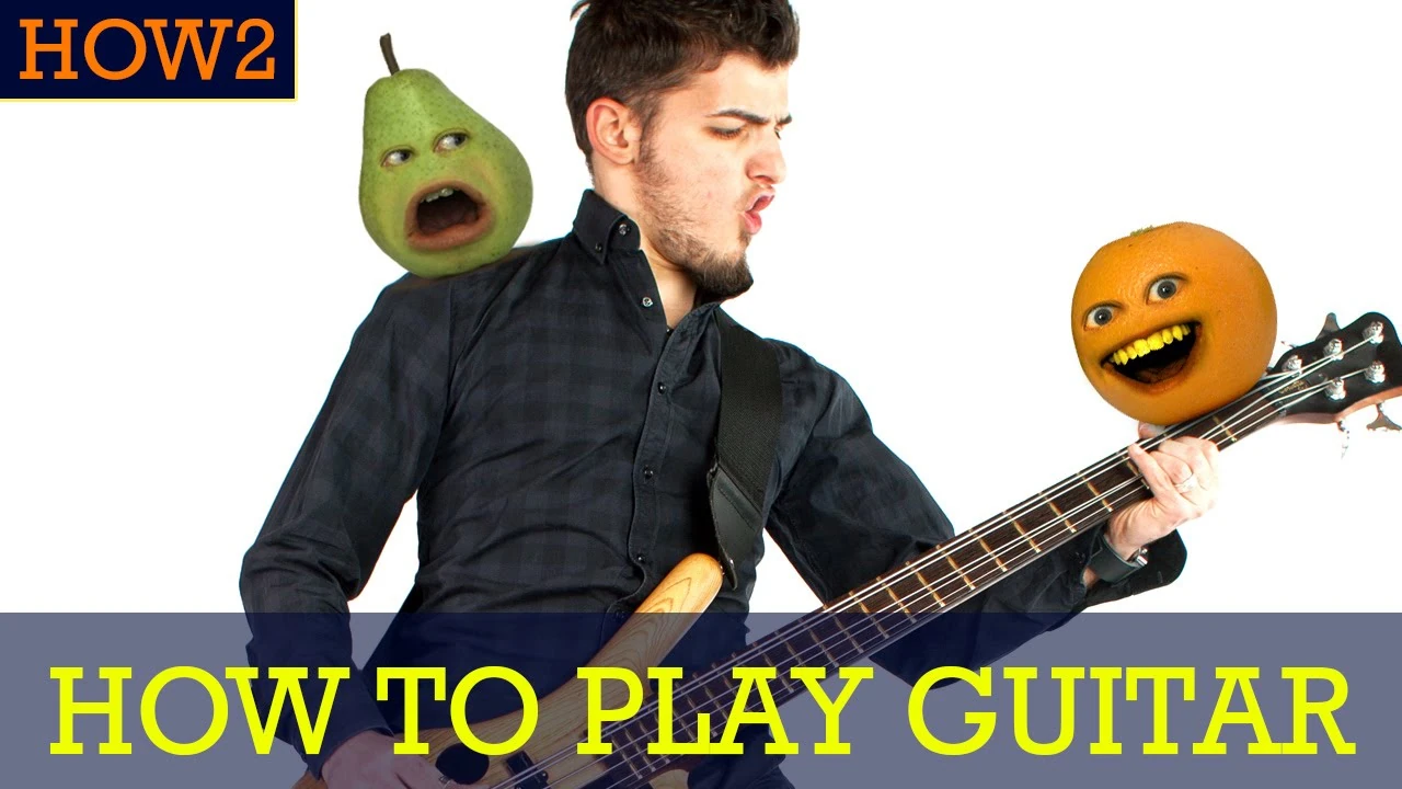 Orange and Pear try to teach you how to play a guitar.