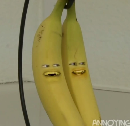 The Bananas are supporting characters who appear in the the episodes "The Exploding Orange" and "Tough Enough" as a flashback. They were seen trying to help Orange with his hiccups. After a number of attempts to cure Oranges hiccups and keep him from exploding, all hope is apparently lost, until suddenly a gorilla breaks into the kitchen and eats the two bananas alive (which was foreshadowed by the headline on Kiwi's newspaper, claiming that a gorilla had escaped from a zoo), scaring Orange so much that he loses his hiccups.
