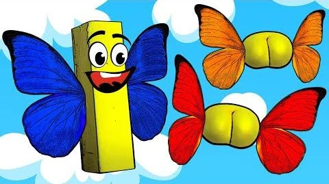 Buttery Butterfly Butts is a song from the Annoying Orange. In this episode, there is a one minute and thirty-nine song (a.k.a. a ninety-nine second song) all about the Buttery Butterfly Butts. The characters in this episodes are just yellow cuboids (probably butter) with wings, a face, and a butt each. You can hear Orange singing in the background. The song is mentioned in the challenge video "Blindfolded Drawing Challenge!" in which Orange is asleep and says the title in his sleep.