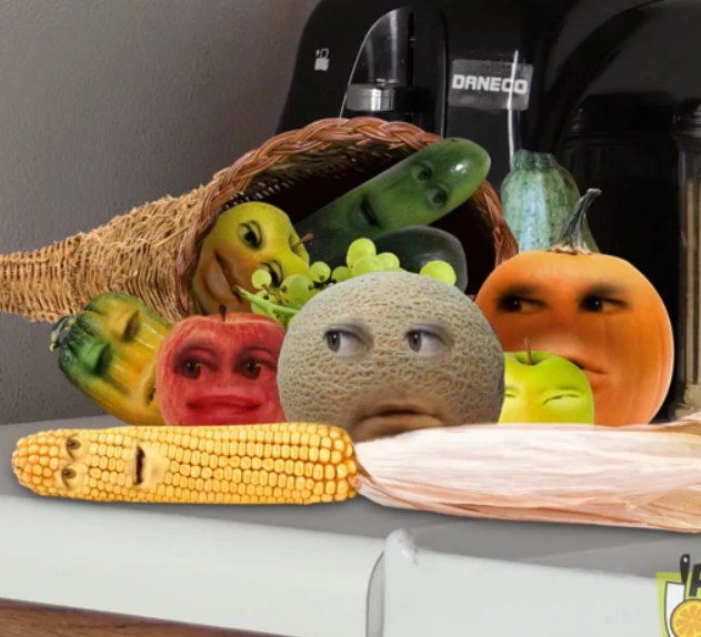 The Cornucopia was a group of minor characters and foods who only appeared in the Annoying Orange episode "2 BILLION VIEWS!". They were seen being knifed as a joke filler for the fact that 17% of the deaths up to that point were by way of Knife.