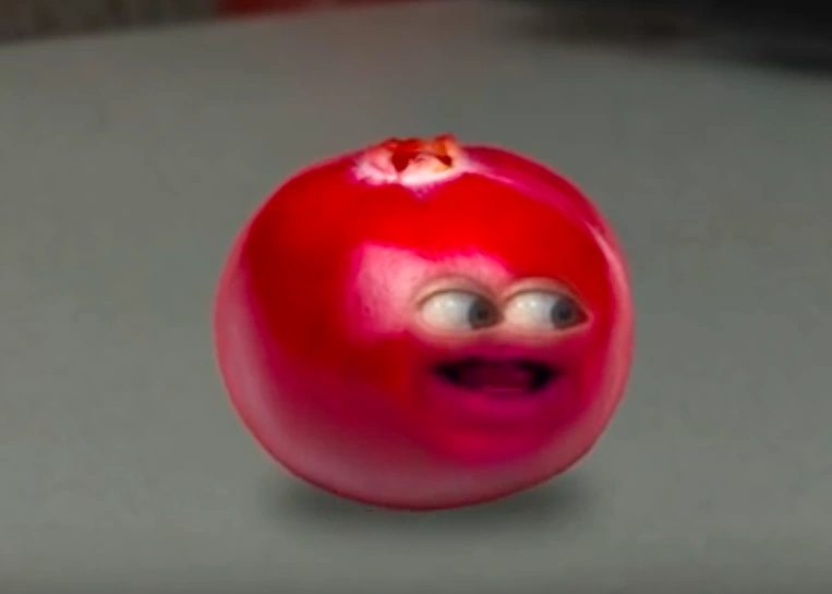Cranberry was a minor character who only appeared in the Annoying Orange episode "Gobble! Gobble!". He was seen entering the kitchen, afraid of the fact that it was Thanksgiving. He then tried to quiet down Orange, who had recently befriended a turkey and began doing annoying things and making noise along with it. Cranberry was then called a "grape" by Orange, which annoyed him. Cranberry explained that since it was Thanksgiving, it is very possible that turkeys and cranberries would be eaten on sight. Orange continued making sounds with the turkey, and began yelling out words that rhyme with one another, annoying Cranberry further. Cranberry tried to keep him quiet, but Orange and the turkey kept making noise. Eventually, like he predicted, all the ruckus Orange and the turkey were making blew Cranberry's cover, as Cranberry was eaten by Dane Boedigheimer.'