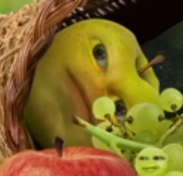 Green Apple was a silent and minor character who only appeared in Annoying Orange Through Time 4. He was one of the foods in the cornucopia.
