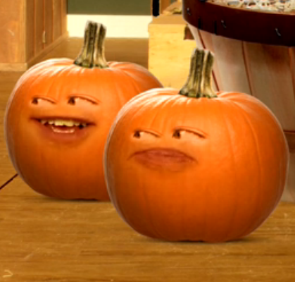 The Pumpkins were minor characters who only appeared in Fruit-Vengers!. One of them began insulting Grapefruit's cannonball along with Zucchini Squash. The rest were seen as one of the vegetables that Grapefruit was terrorizing with his telekinesis. Some of them later appeared in Annoying Cutsie, acting hostile towards Orange because he was wearing a hat that used to be one of them. One of them then flipped him off of a fragile bored.